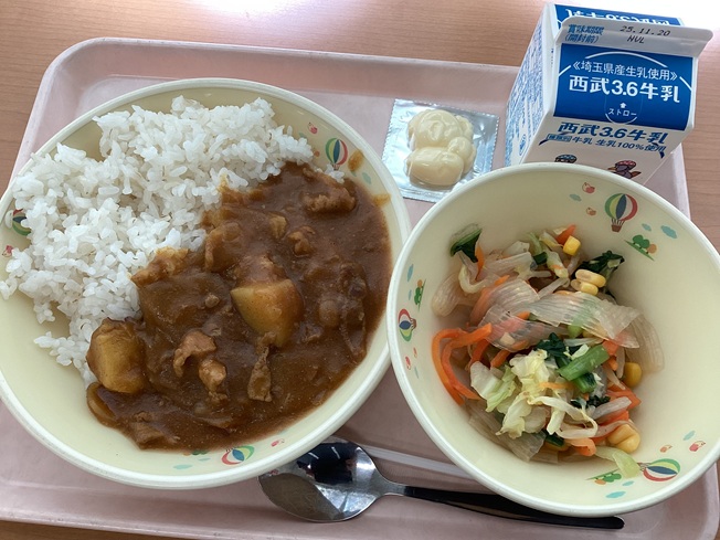・今日のカレーは、ジャガイモの代わりにさつま芋を使用したほんのり甘いカレーです。