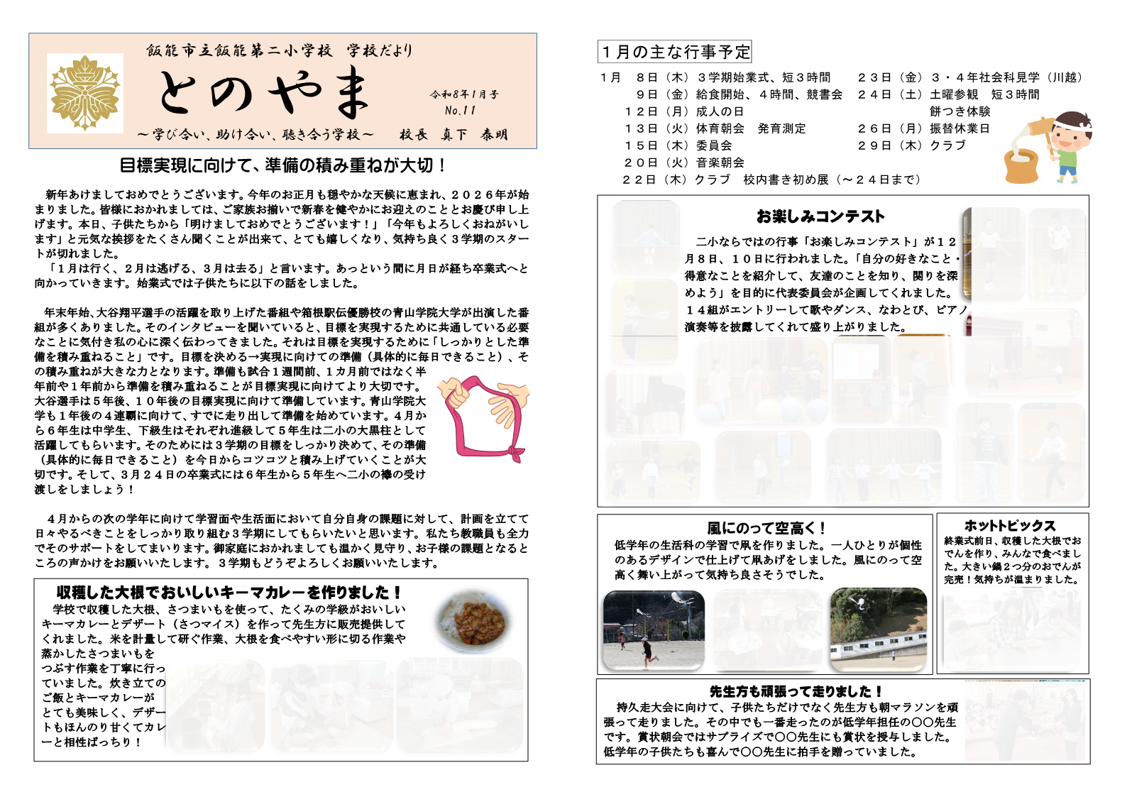 下記のURLからもアクセスできます。https://www.hanno.ed.jp/han2syou/R7/02gakkoudayori/1gatugou/1gatugou.png