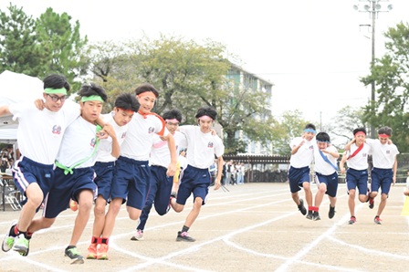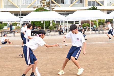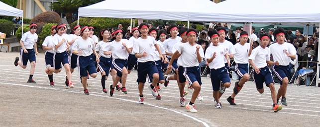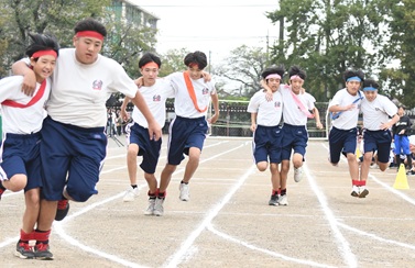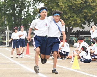 特集が遅々として進まず済みません(;^_^A 3年生の学年種目、走り綱引きです。昨年までの綱引きから変更したこの種目、スタート前からお互いに声を掛け合い大変に気合が入る種目となりました。迫力ある競技の模様をご覧ください。