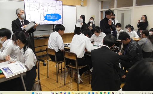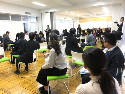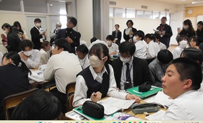 飯能第一中学校では子ともたちの質の高い学びを保障するため授業研究を行っています。昨日は茅ケ崎市元教育長の谷井茂久先生をお招きし校内研究会を行いました。また、今回は台湾の新北市の小中学校の先生方26名が本校の授業研究を視察されました。午前中3、4校時は全ての教室を参観したいただき、午後は3年生理科の焦点授業を本校教員とともに参観し、生徒下校後に合同で研究協議を行いました。本校の授業研究では子どもの学ぶ姿から学んだことを授業者にフィードバックしていますが台湾の先生からは、子どもたちが50分間集中していた、前に時間の資料を探すなど自発的に学習していたなど子どもたちの良い面を教えていただきました。指導者の谷井先生からは教えてもらうのを待っている子ではなく「自分で水路を掘ることができる」子どもを育てることの大切さ、そのために探究と協同の学びが重要であることをお話しいただきました。本校では日頃からお互いの授業を見合って学ぶことに加え、年に5〜6回の全体授業研究会を行い質の高い学びを目指しています。