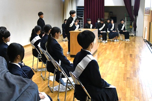 昨日、飯能市民会館小ホールで開かれた少年の主張大会に本校から3年生2名が出場しました。今年は小中高生合わせて1,011名の中から第1次審査を通過した15名に選ばれての出場です。本校の生徒が発表したテーマ「未来の飯能市を支えるプロジェクト」は飯能市の資源である森林をドローンや仮想現実などを活用して活かす事業を提案しました。「報われる努力を信じて」は硬筆展に取り組んだ経験から努力することの大切さをうったえました。どちらも具体的で素晴らしい発表でした。二人の発表はそれぞれ優秀賞、優良賞に、また、この日「絆・ふれあい」ポスターコンクールの入賞者の表彰も行われ本校から出品した生徒が優良賞の栄誉に浴しました。今日も一中生の活躍する姿をご紹介しました。