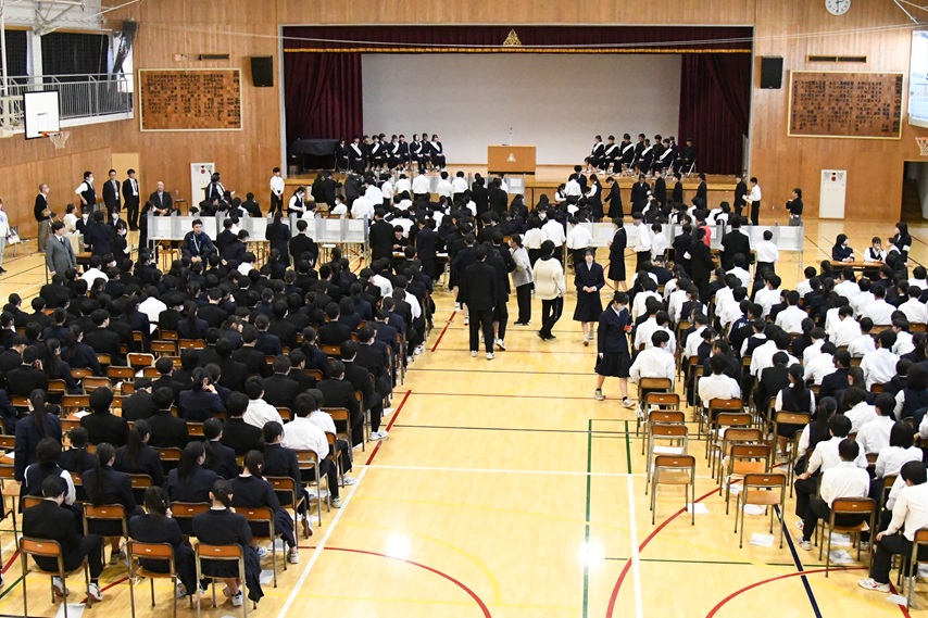 先日の合唱発表会で残念ながら歌うことができなかった1年生が、本日5校時に合唱発表会を行いました。この1週間しっかりと練習を重ねてきた1年生の満を持しての発表です。先輩である2年生、3年生、そして大勢の保護者の皆様が見守る中、各クラスとも緊張しながらも堂々と精いっぱい歌うことができました。どのクラスも学級が一つになっていて、とても美しい歌声でした。学年合唱は特に素晴らしかったです。1年生、がんばりましたね!