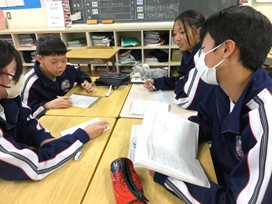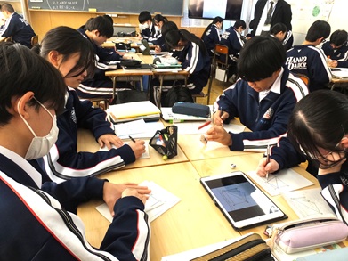授業研究を学校づくりの中核においている本校では誰一人独りにしない授業を日々行っています。1月28日に校内授業研究会を予定している2年生の数学の授業では図形の証明問題に挑戦しています。今日は基本的な問題(といっても入試問題の過去問ですが)の証明の道筋に取り組みました。分からないことをそのままにしない子どもたちに育ちつつあります。