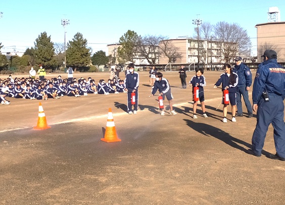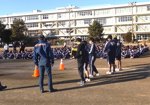 今日は学期始めの避難訓練でした。想定は地震とそれに続く火災です。災害時で大切なことは落ち着いて行動することです。そのための訓練では、訓練と思わず真剣に取り組むことが重要です。今日の子どもたちは教室で頭を守るための行動、廊下に整列してから校庭に避難するまでの行動、どの場面でも無駄なおしゃべりをする生徒は皆無で皆が真剣に取り組むことができました。最後に飯能日高消防署の職員の皆さんから初期消火の方法について教えていただきました。あって欲しくはないけどいつ起こってもおかしくない地震・火災です。いざというときのために避難の方法を常に意識しておきたいものです。