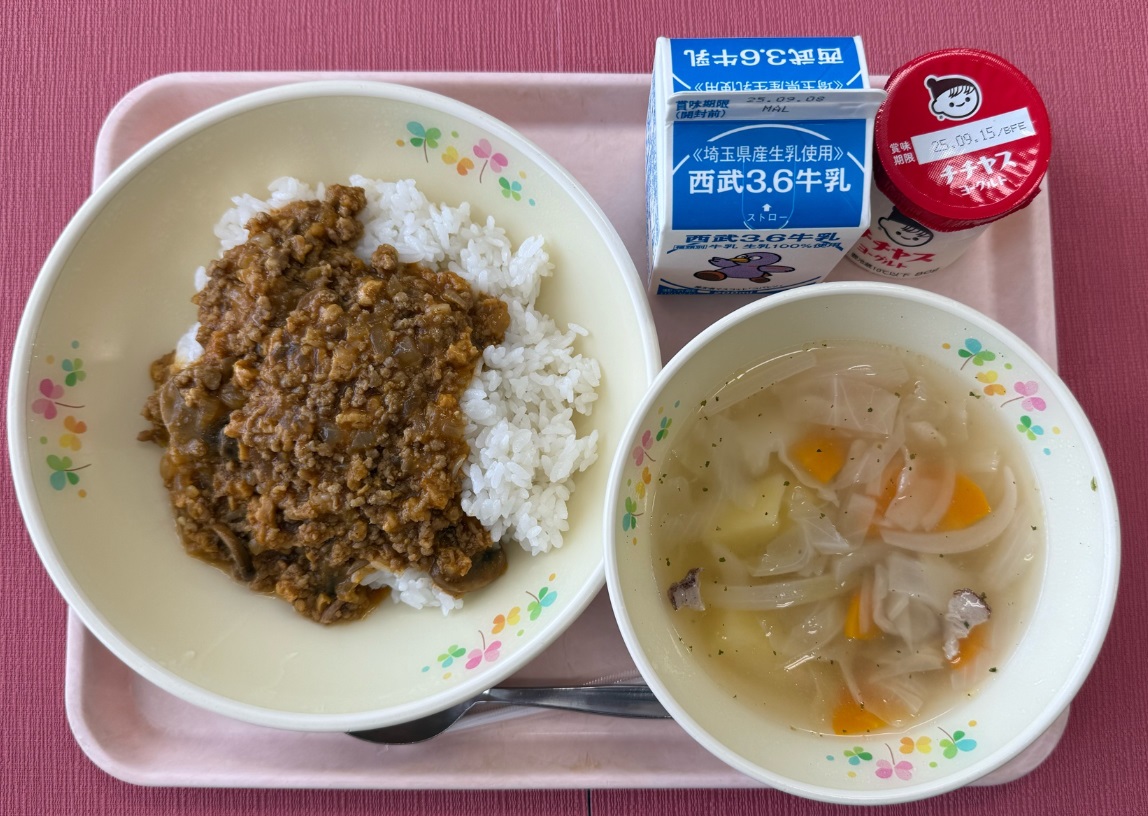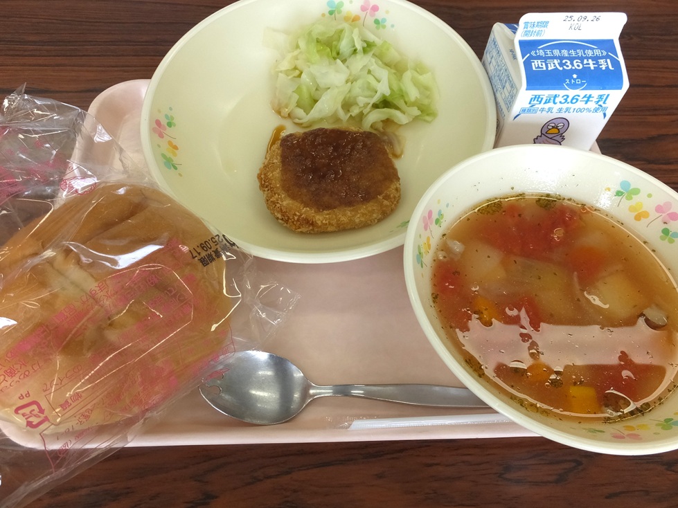 子どもパンスライス メンチカツ ミネストローネ キャベツのソテー