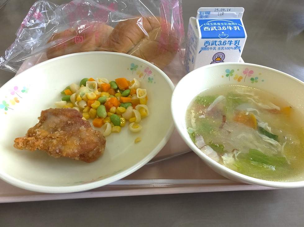子どもたちが大好きなコーンわかめラーメンに新メニューのツナマヨ餃子、そして鉄分がしっかり摂れる甘いプルーン。今日も最高でした!