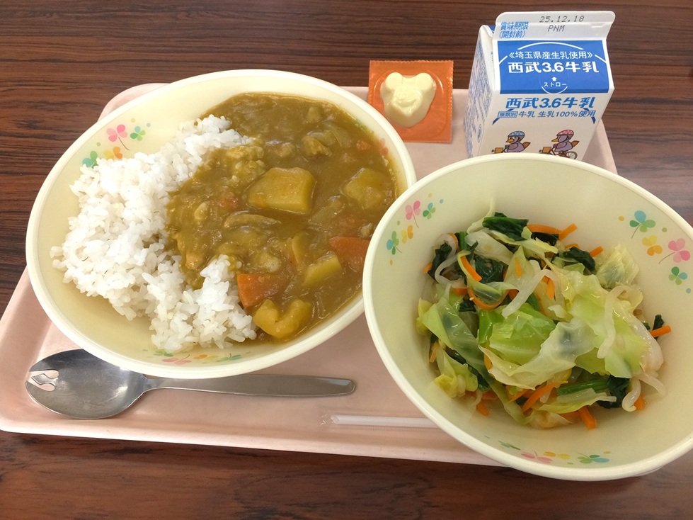米粉カレーライス ほうれん草入りサラダ 型抜きチーズ
