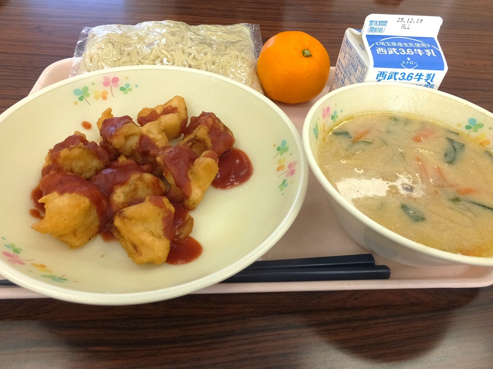 豆乳タンタンメン じゃがいものフワフワ揚げ みかん