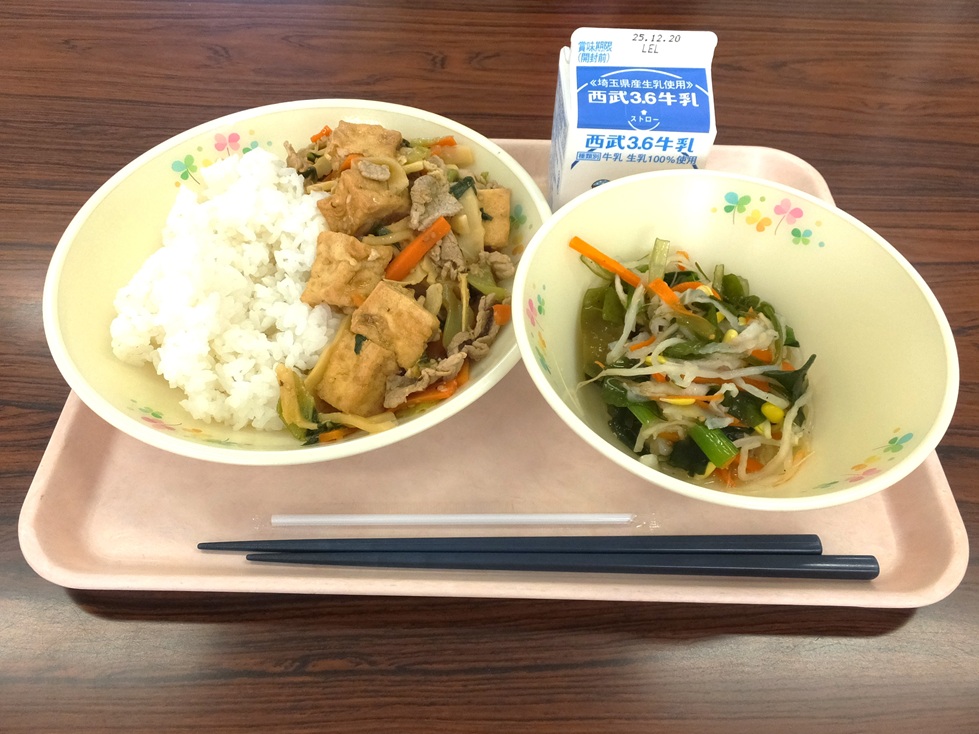 山形県の郷土料理いも煮、埼玉県産の深谷牛も入って今日も超豪華な給食でした!