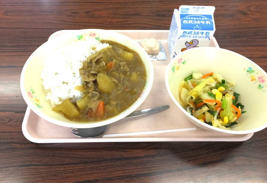 今日は3年生リクエストメニューのカレーライスです。一中のカレーライスは朝から仕込み、じっくり煮込んだ本格派です。おいしそうでしょ?おいしいです!