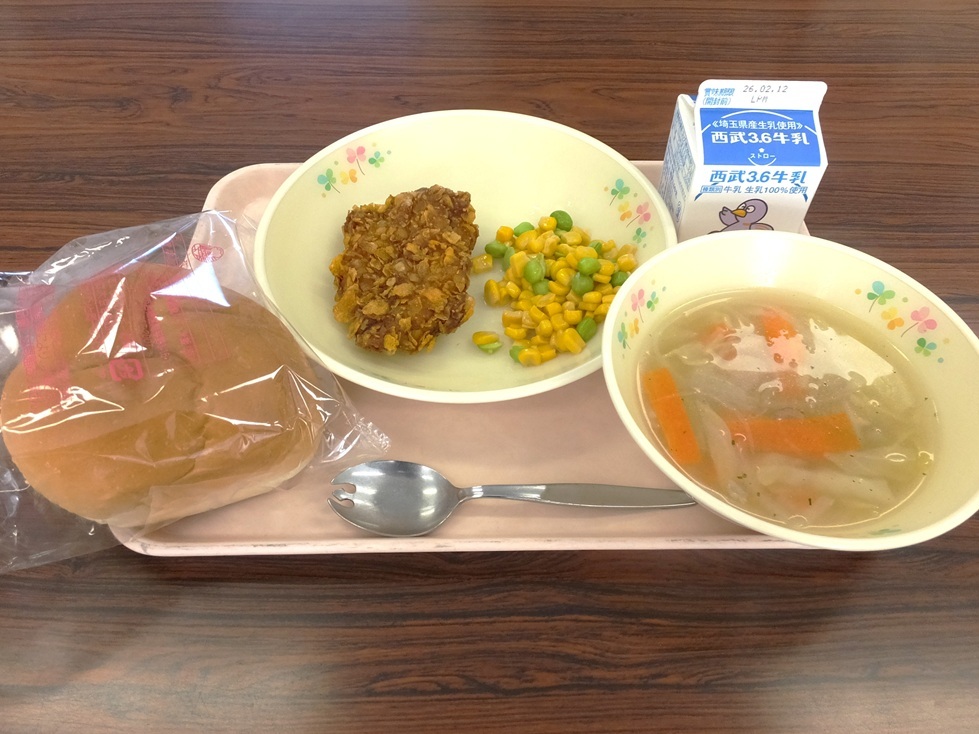 フラワーロール クリスピーチキン ABCパスタスープ コーンと枝豆のバター醤油ソテー