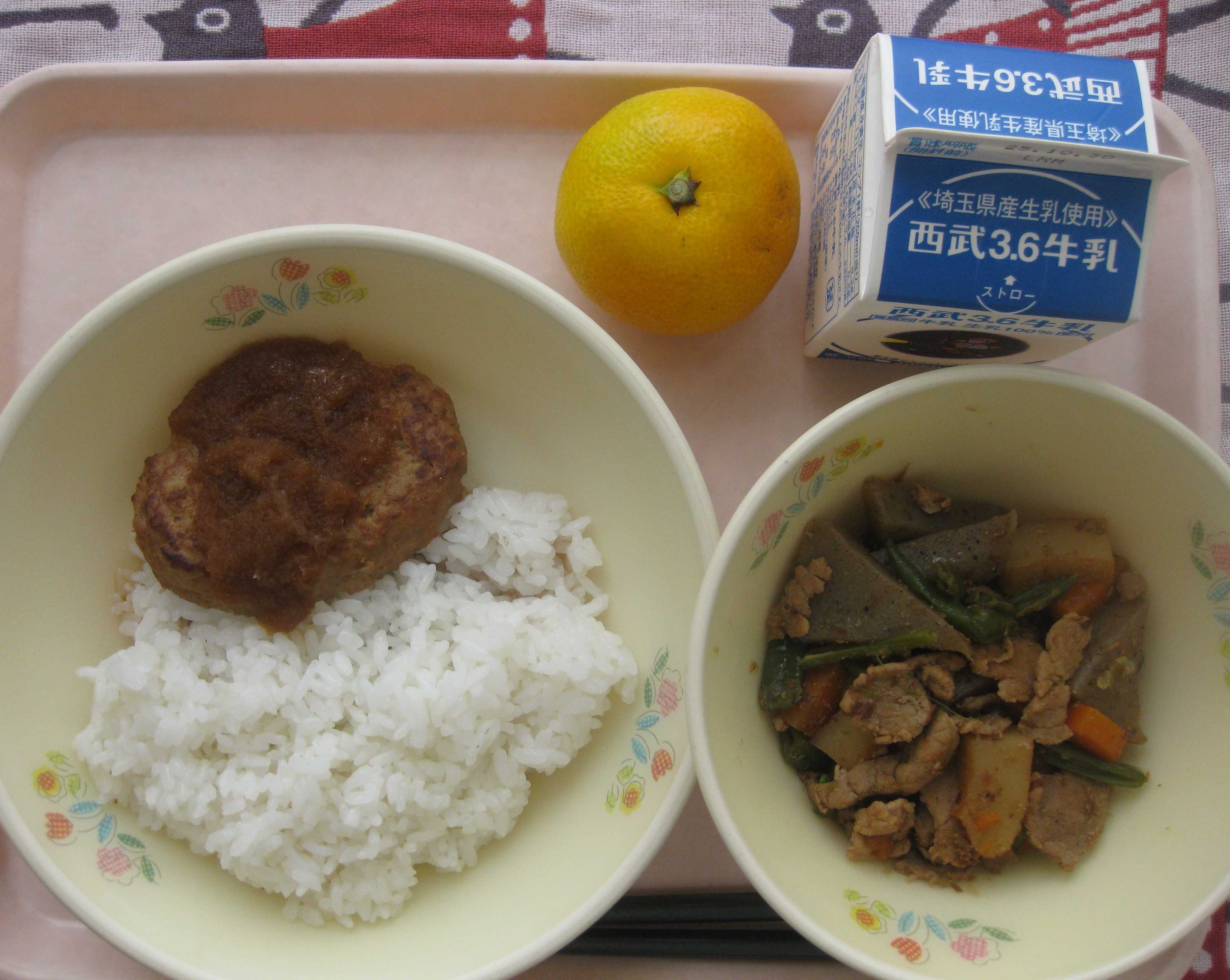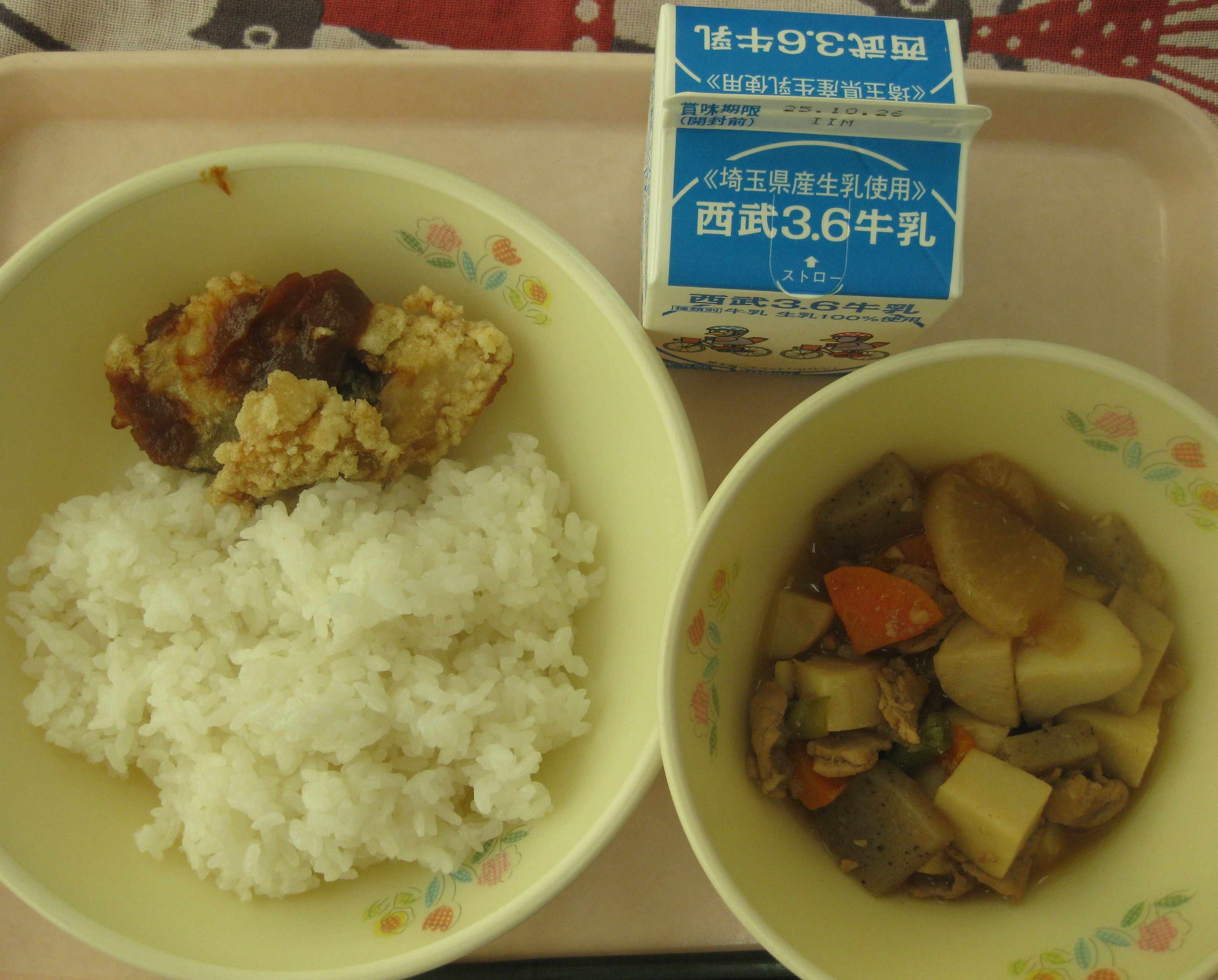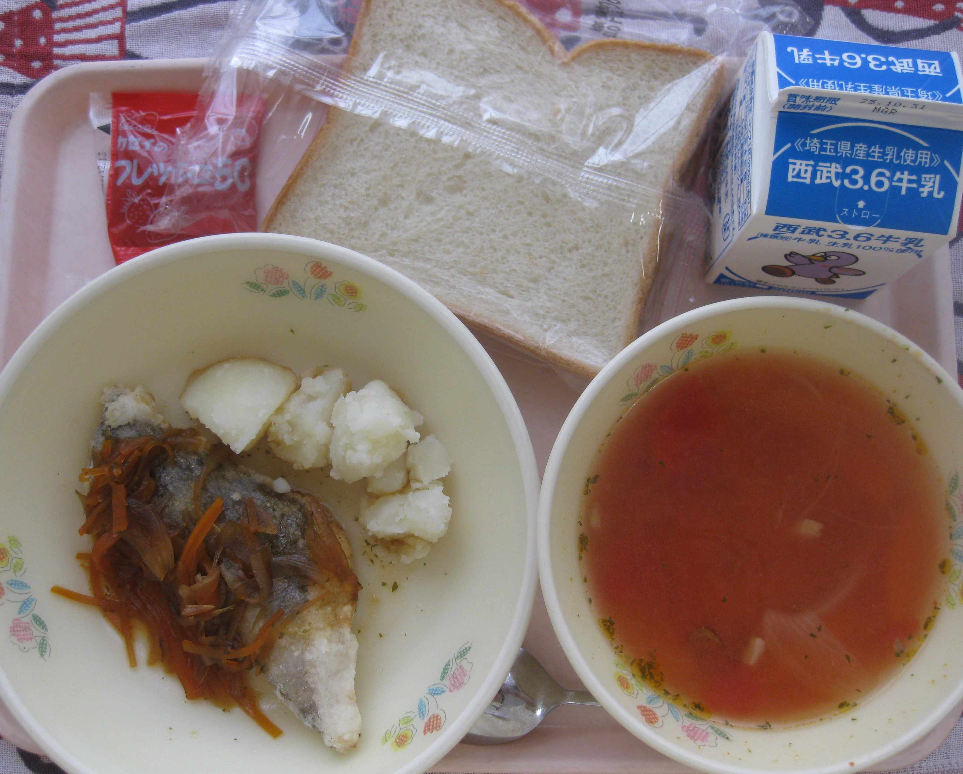 白身魚のレモン煮・バター粉ふき芋・牛乳>です。