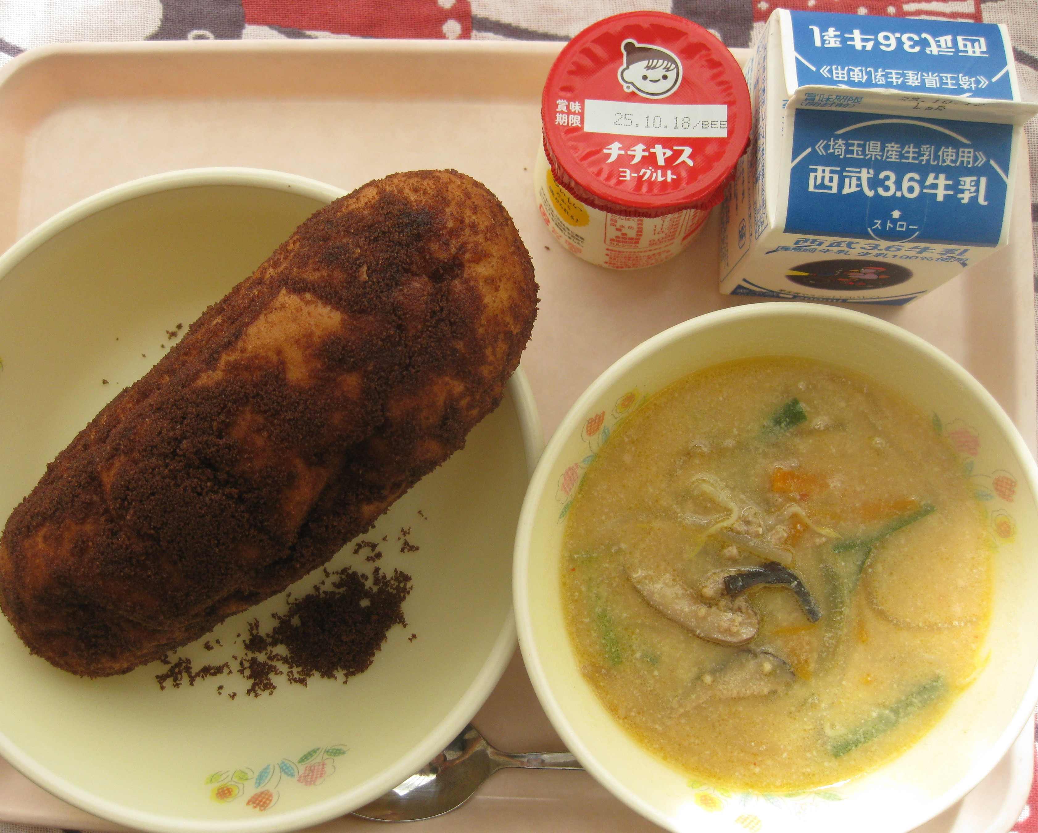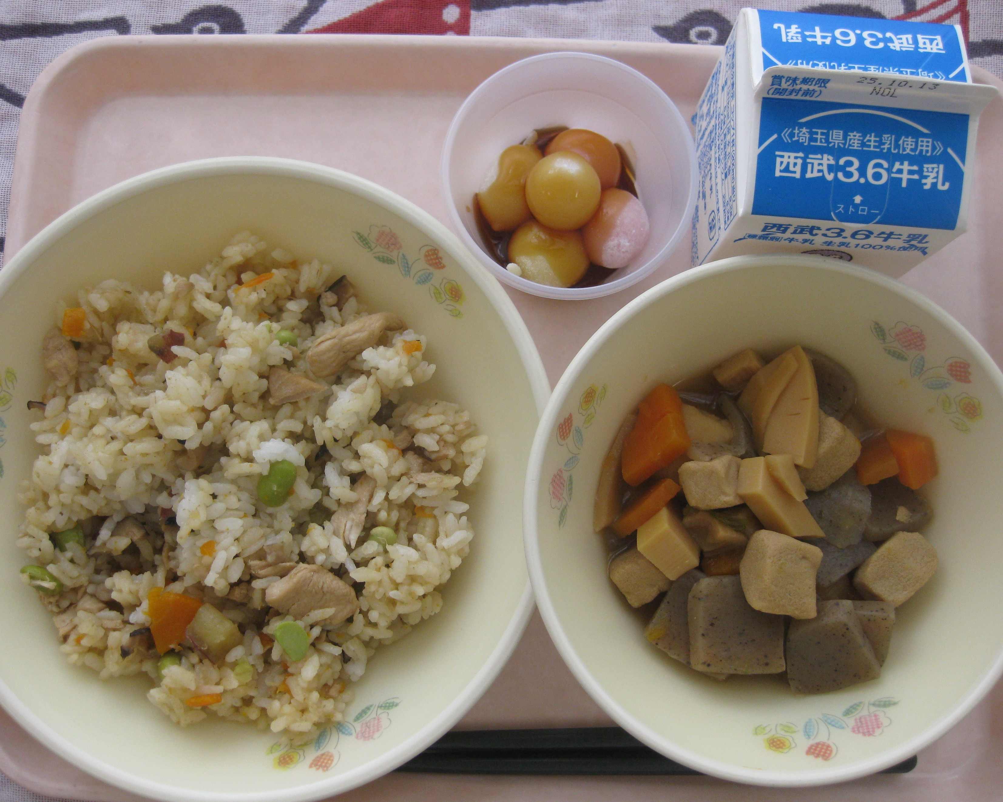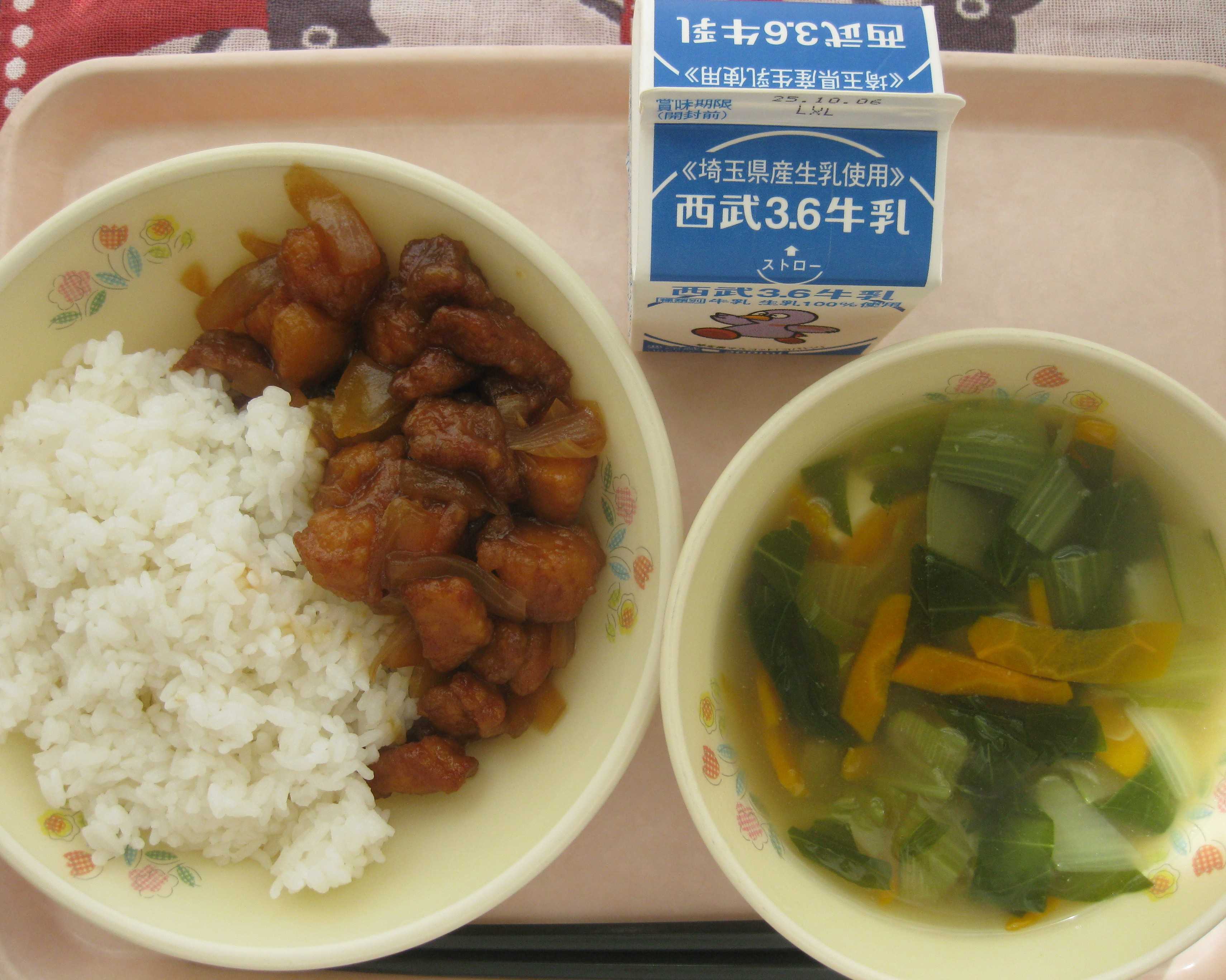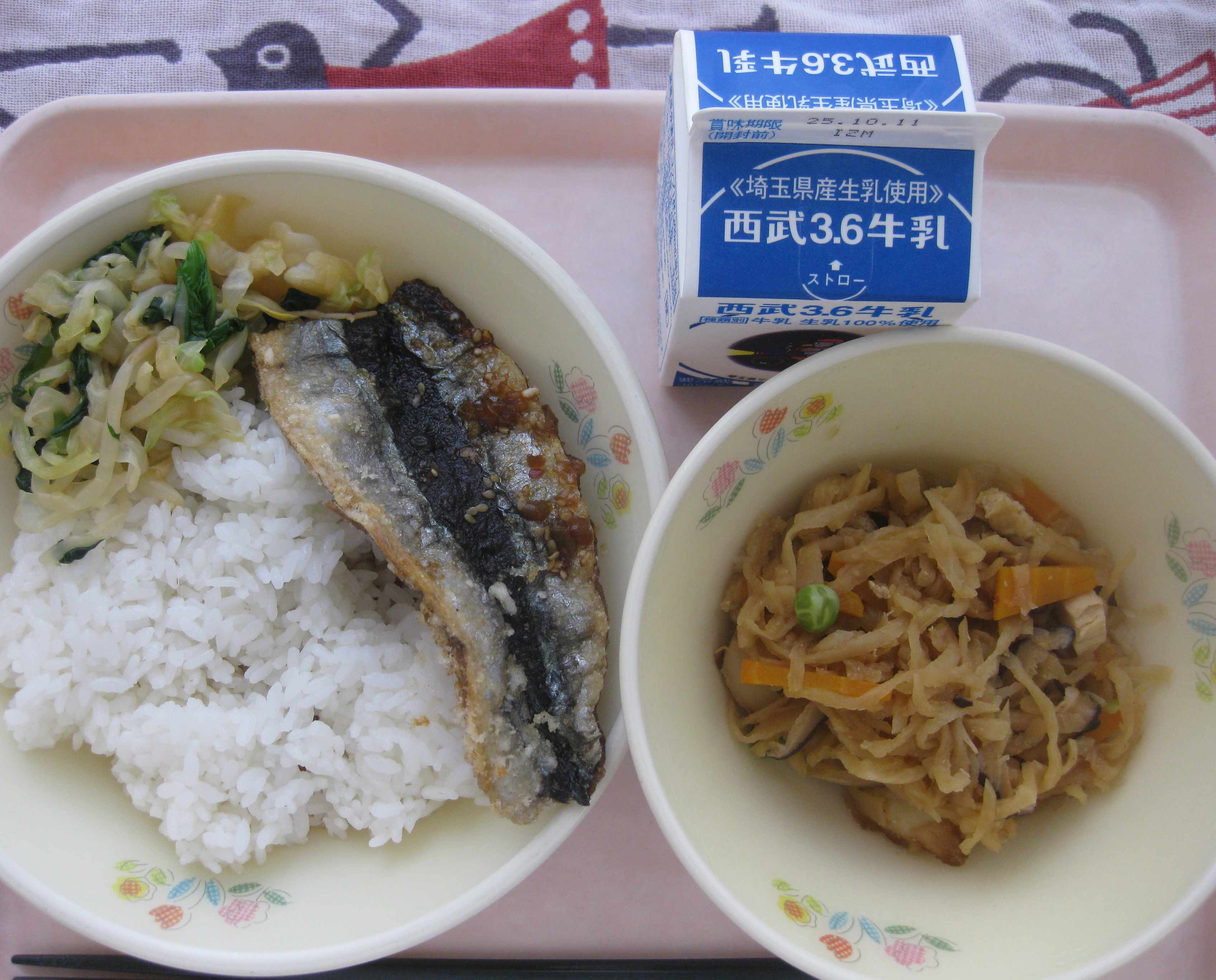 白身魚のレモン煮・バター粉ふき芋・牛乳>です。