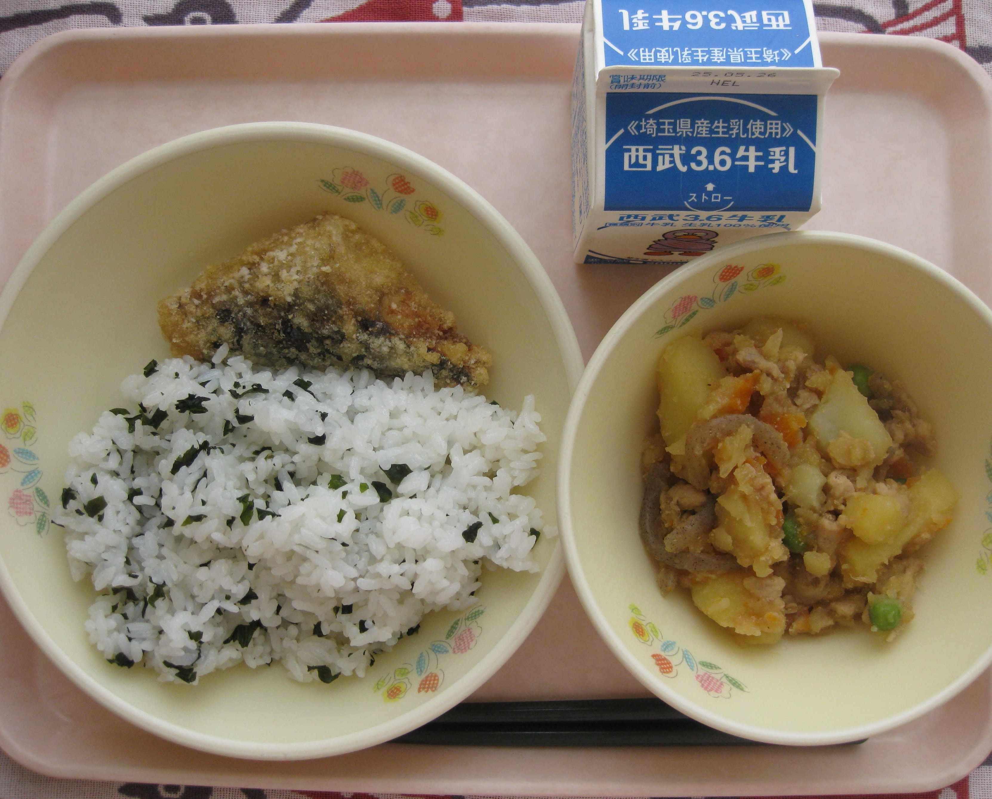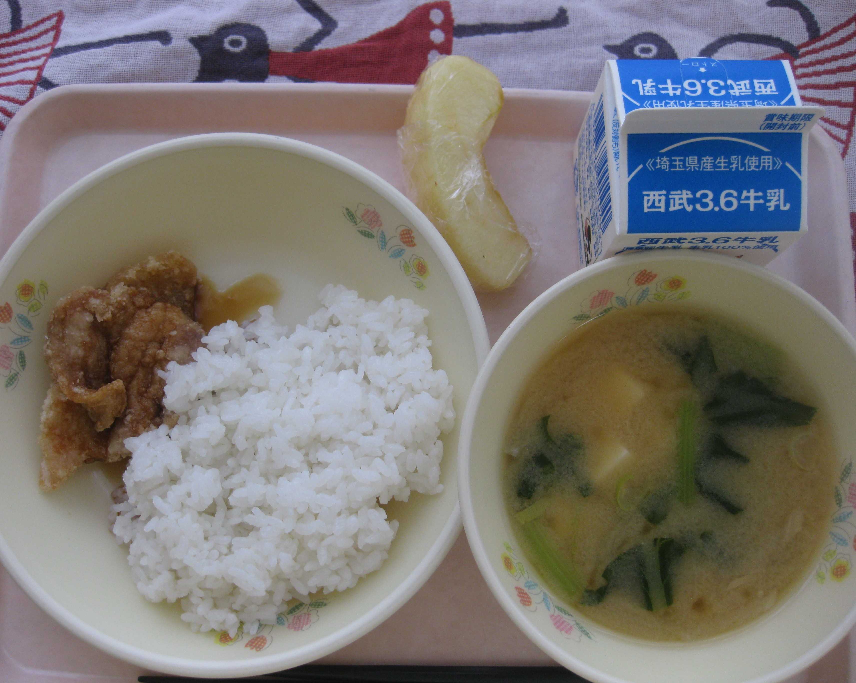 <わかめご飯・鶏肉の塩麴から揚げ・