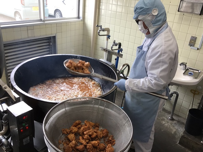 ・6年生が献立名も考えてくれました。サクッとから揚げは、米粉と片栗粉を混ぜて鶏肉につけて揚げています。米粉によって、サクッとしています。