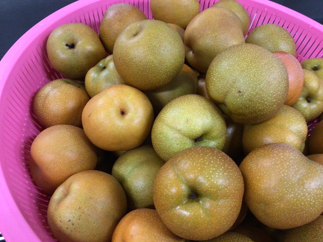 ・デザートの梨は、飯能産です。双柳にあるマキノキ園さんから、甘くておいしい「豊水」が73個届きました。旬の果物を味わいました。