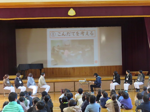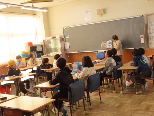2学期最後の月曜日の今日は、1年生が「お話会」をお世話になり、他のすべての学級で「読み聞かせ」を行っていただきました。