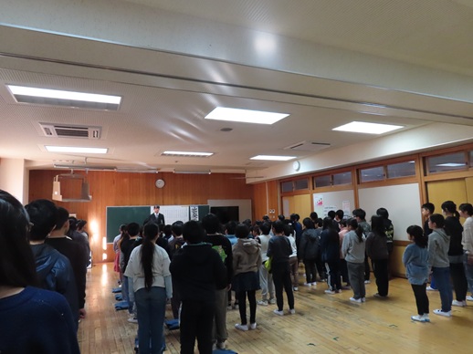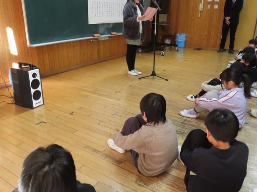 始業式では、代表の6年生女子が「3学期に頑張りたい3つのこと」について立派なスピーチをしてくれました。