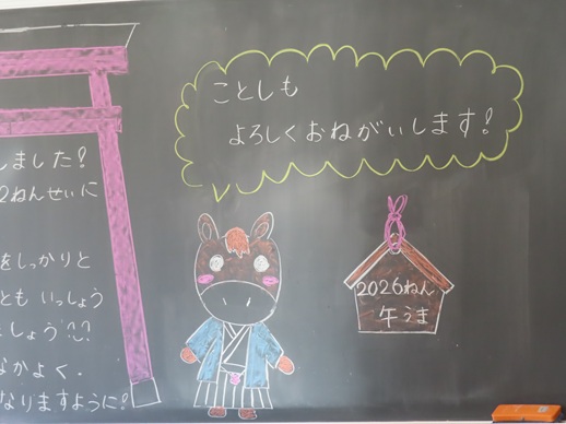 それぞれの教室には、担任からのメッセージが記されています。さあて、2026年(令和8年)午年。