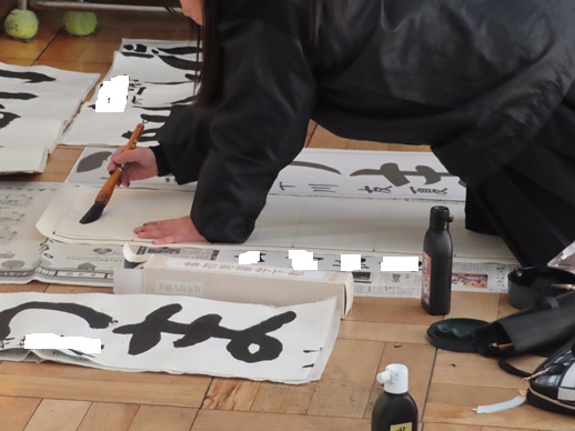 今年度からは原則として、この練習会で書いた作品を市内の書き初め審査会に出品したり、校内書初め展(19日〜23日まで)の掲示用として仕上げていきます。