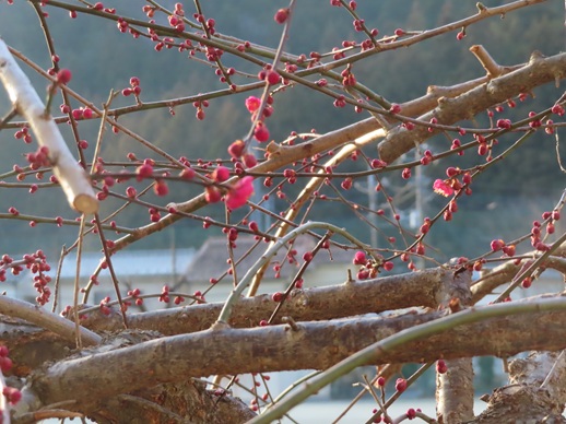 朝は氷点下まで冷え込む原市場も、昨日までの暖かな陽気に硬いつぼみもほころび始めたのでしょう。