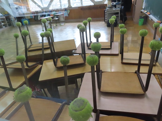 不審者役の職員が全クラスをまわりますが、みんな上手にバリケードを築いてあったため不審者は侵入できませんでした。