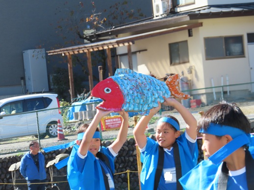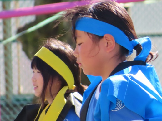 風で飛ばされないように、高学年がそれぞれに法被を押さえていてくれました。