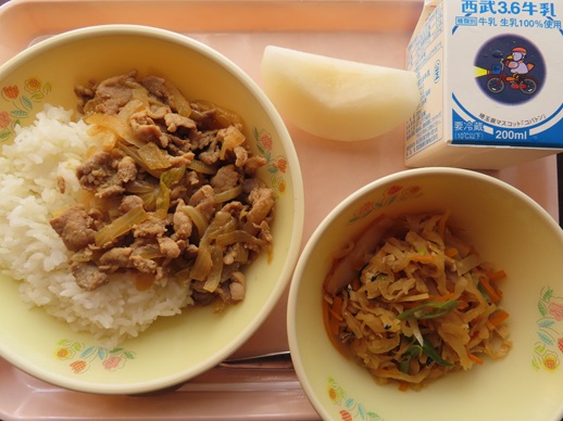 今日の給食では、「キハダマグロ」から作ったツナを使用して、キャベツ、玉ねぎ、チーズ、マヨネーズを合わせて、調理員さん方が一つ一つ愛情をこめて手作りしてくださいました。