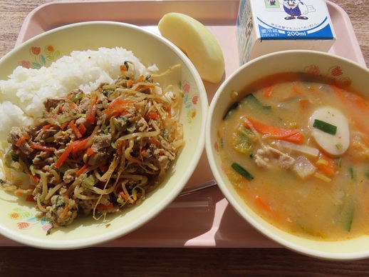 今日は、新献立の「キムチスープ」についてです。
