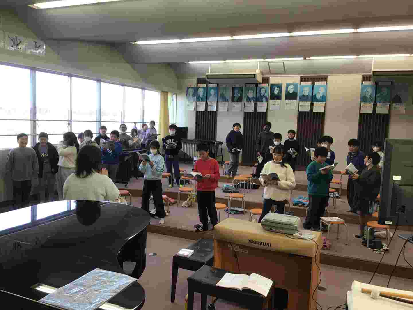 5校時音楽室からいい声が聞こえてきました。行ってみると4年生が今月の歌「うたえバンバン」を歌っていました。「く〜ちをおおきくあ〜けまして〜」。歌詞の通り大きな口で元気いっぱいに歌っていました。