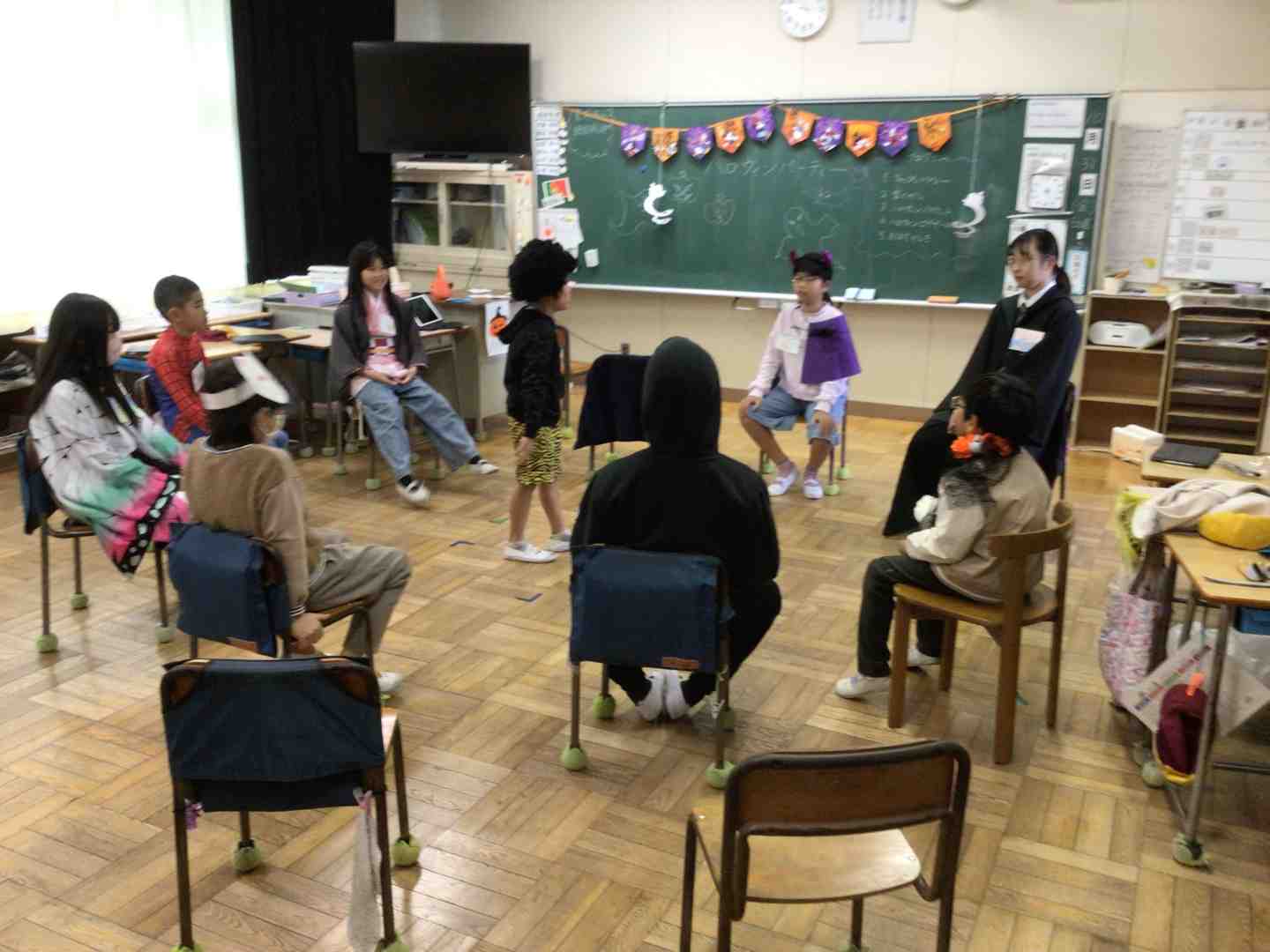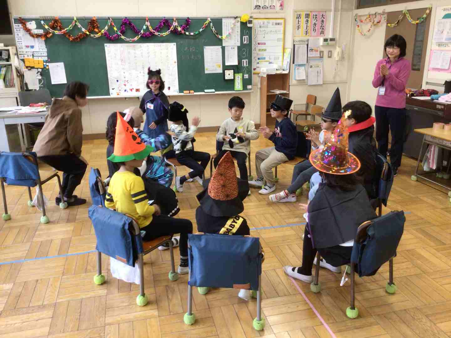 今日は10月31日「ハロウィン」ということで、英語の授業などで外国の文化に触れるような学習が進められていました。先生方もいつもと違った服装でした。あすなろ学級に足を運ぶと、準備してきたハロウィンパーティーをしていました。フルーツバスケットも、今日はお化けやハロウィンに関係するものの名前でした。楽しんでいました。