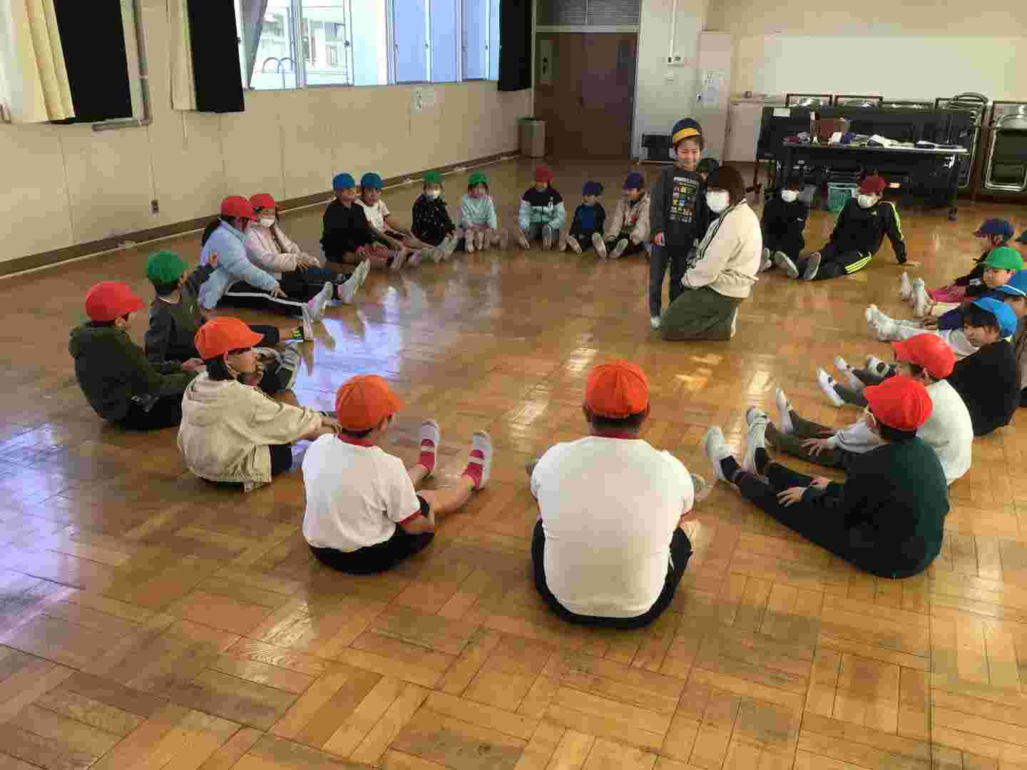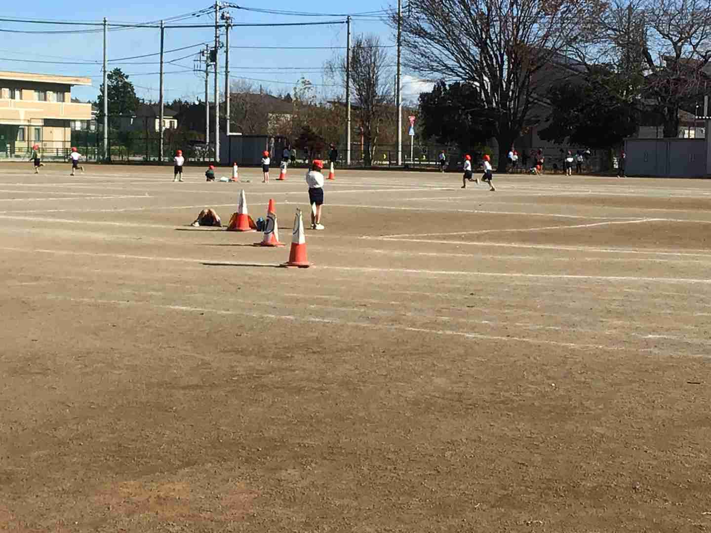 2校時運動場では、1年生が持久走に取り組んでいました。小学校の持久走は、決められた距離を走るのではなく、決められた時間を自分のペースで走り続ける「体つくりの運動」です(中学校は「陸上競技」長距離走)。自分で走り続ける力を寒い中ですが伸ばしていました。