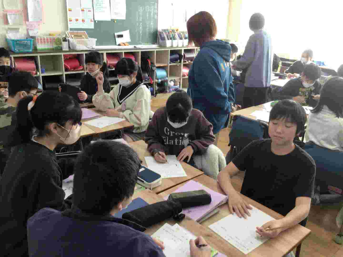 寒い1日となりました。あすなろの教室に足を運ぶと、音楽の授業をしていました。「もみじ」を大きな声で歌っていました。6年生の教室では、家庭科の授業で献立を考えていました。実習に向けグループで話し合いを進めていました。