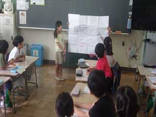 今日は学級で発表会を行い、調べてまとめた作品をもとにみんなに分かるように説明してくれました。