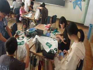 まもなく行われる仲良し運動会に向けて、体操服に「精明小ゼッケン」を縫い付けました。