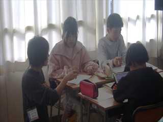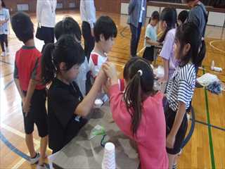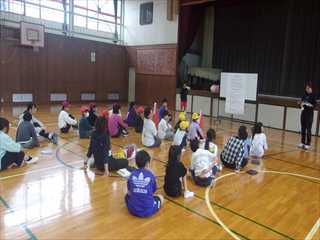 後半はグループの活動でグループ名を決めたり、仲間づくりゲームしたりして交流を深めました。