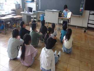 1年生、2年生は体を前に乗り出して、瞬きもしないくらいお話しに聴き入っていました。