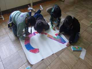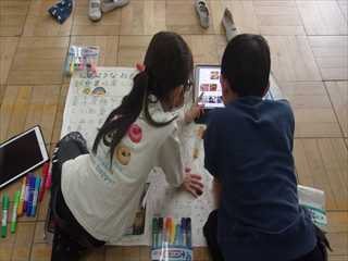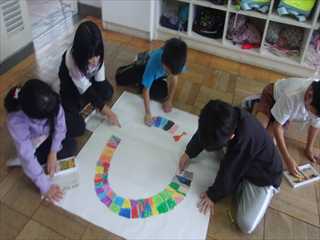 代表委員会から各学年に割り当てられた文字を、みんなで協力して作っていました。どんな文字ができあがるか、楽しみです。