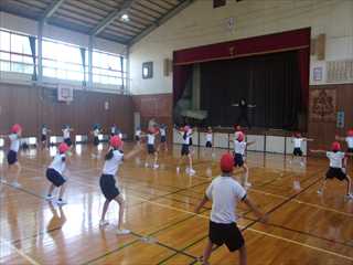 今日は3年生と4年生が合同で体育館で練習をしました。