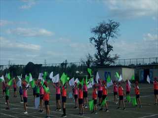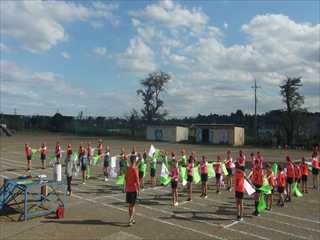 早速校庭に並んで2色のフラッグが揺れ始めました。