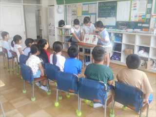図書委員会の6年生・5年生が、朝の時間に読み聞かせをしてくれています。