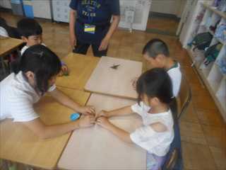 紙コップを使ったけん玉づくりや折り紙で「わっか飛行機」を作って、みんなで楽しく遊びました。