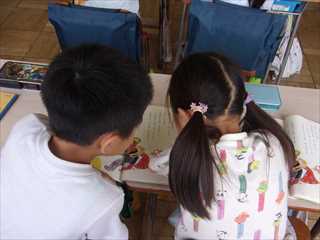大きなかぶの話は、一度は読んだことがという方も多いともいます。1年生が場面の様子を思い描いて、動作化をしながら読みの楽しさを味わっています。