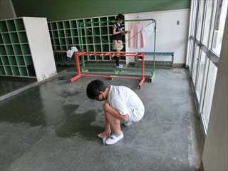 5・6年生の美化保健委員会の子供たちが、委員会の時間を使って昇降口の清掃を行ってくれました。