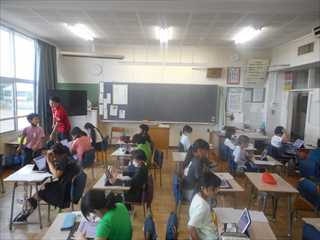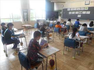 4・5・6年生では、埼玉県学力学習状況調査が行われました。今年度からオンラインによる調査となり、子供たちはタブレットで問題や質問に取り組みました。