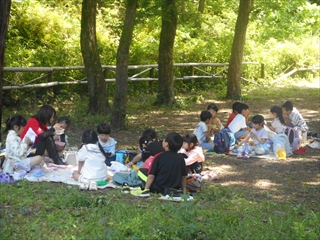 昼食後には、広場で各グループごとに2年生が考えた遊びを一緒に楽しみました。