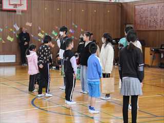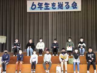 これまでお世話になった6年生へ感謝を伝える会があり、1年生から5年生が一人ずつありがとうの気持ちを伝えました。