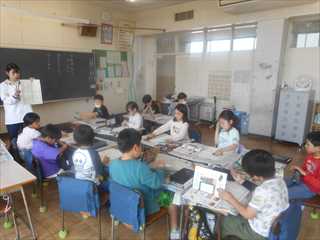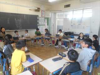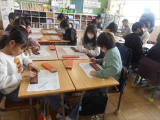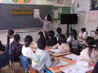 地域のそろばん塾の先生をゲストティーチャーにお招きして、3年生がそろばんの学習をしました。
