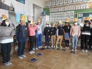 業間休みに、体育委員会が企画した「人狼鬼ごっこ2」を、全校で楽しく活動しました。体育委員会の企画は3回目。運動する楽しさやみんなで活動する楽しさを味わえる企画を考えてくれました。6年生とも一緒に遊ぶことができ、よい思い出になりました。