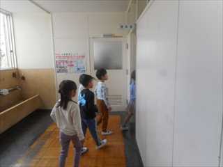 2年生が4つのグループに分かれて、1年生を学校たんけんに連れて行ってくれました。